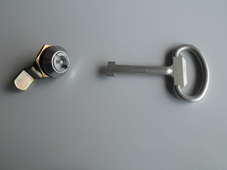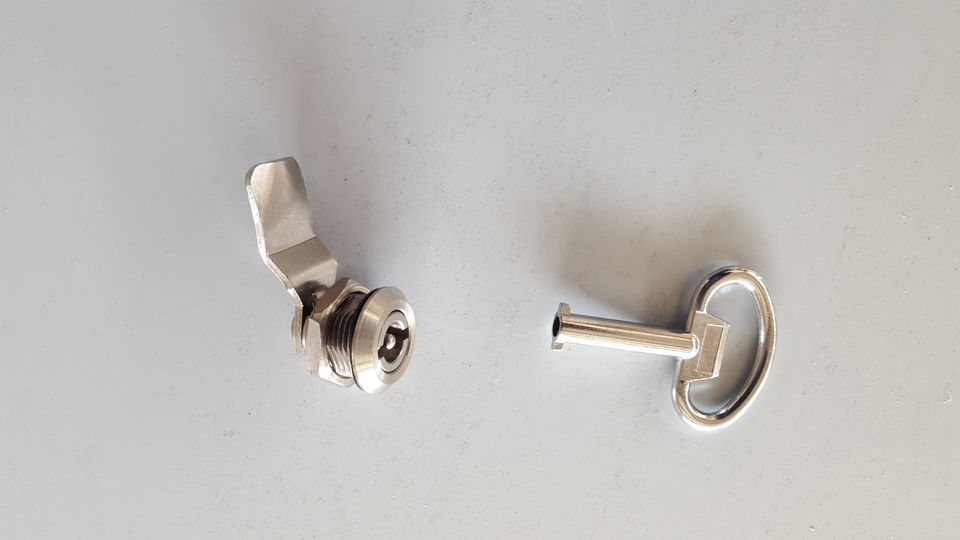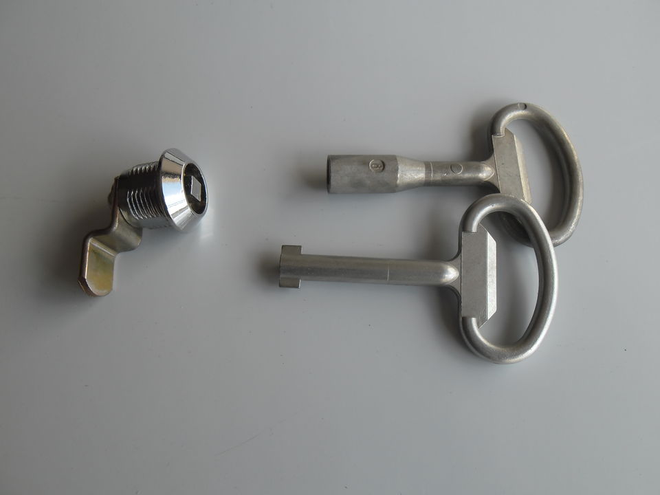 Door: is supported by two hinges and is removable by lifting vertically when open. A lip is folded into the top inside edge to prevent capillary action. A PVC flame retardant sealant resistive to fungus solvent and weather is attached to the inside of the door. Two catches are mounted on each door which is opened with a screwdriver. These may be replaced with a lock and keys as an extra.
